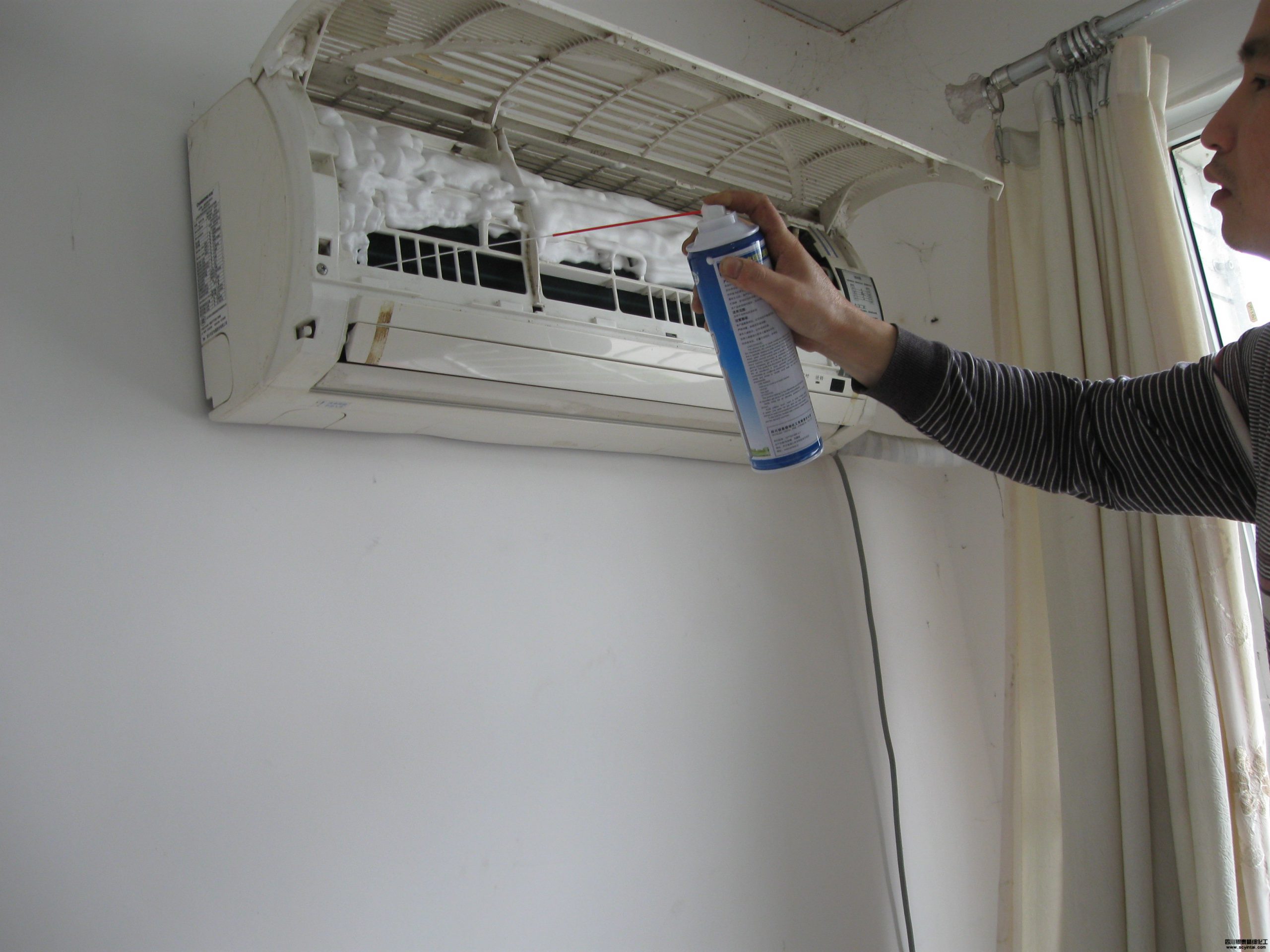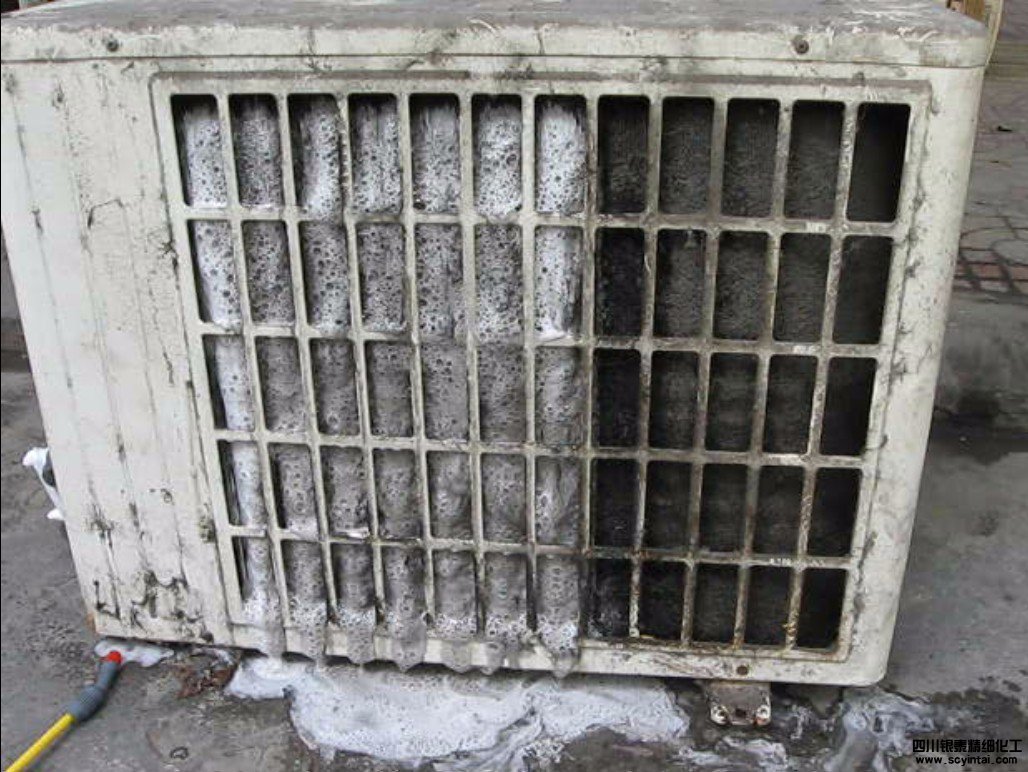 當(dāng)環(huán)境溫度30℃以下,直接噴灑本清洗劑至濕透就可;當(dāng)環(huán)境溫度30℃以上時,先用自來水將翅片(或盤管)澆濕,然后再噴灑本清洗劑至足量。待3~5分鐘后,清洗劑自動發(fā)泡將臟物清洗從翅片縫里排出。發(fā)泡完后,用自來水將殘余泡沫及翅片殘留清洗劑沖洗干凈。